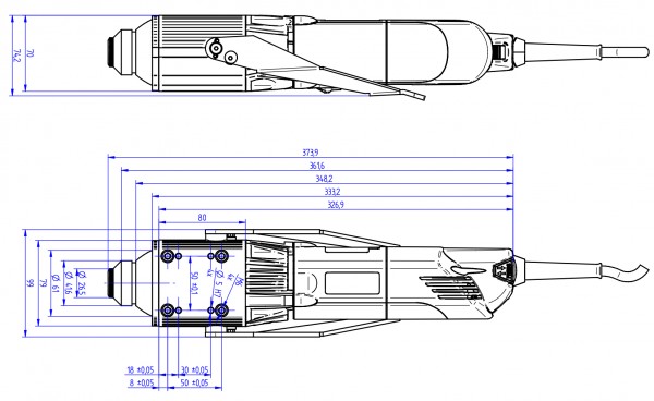 Aufnahmeleistung: 1050 WattDrehzahl: 5000...25000 1/min