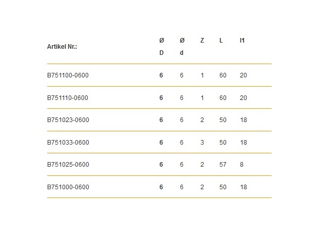 W25°, L:60x20, z:1, Schaftdurchmesser d6, Schneidendurchmesser Ø6
